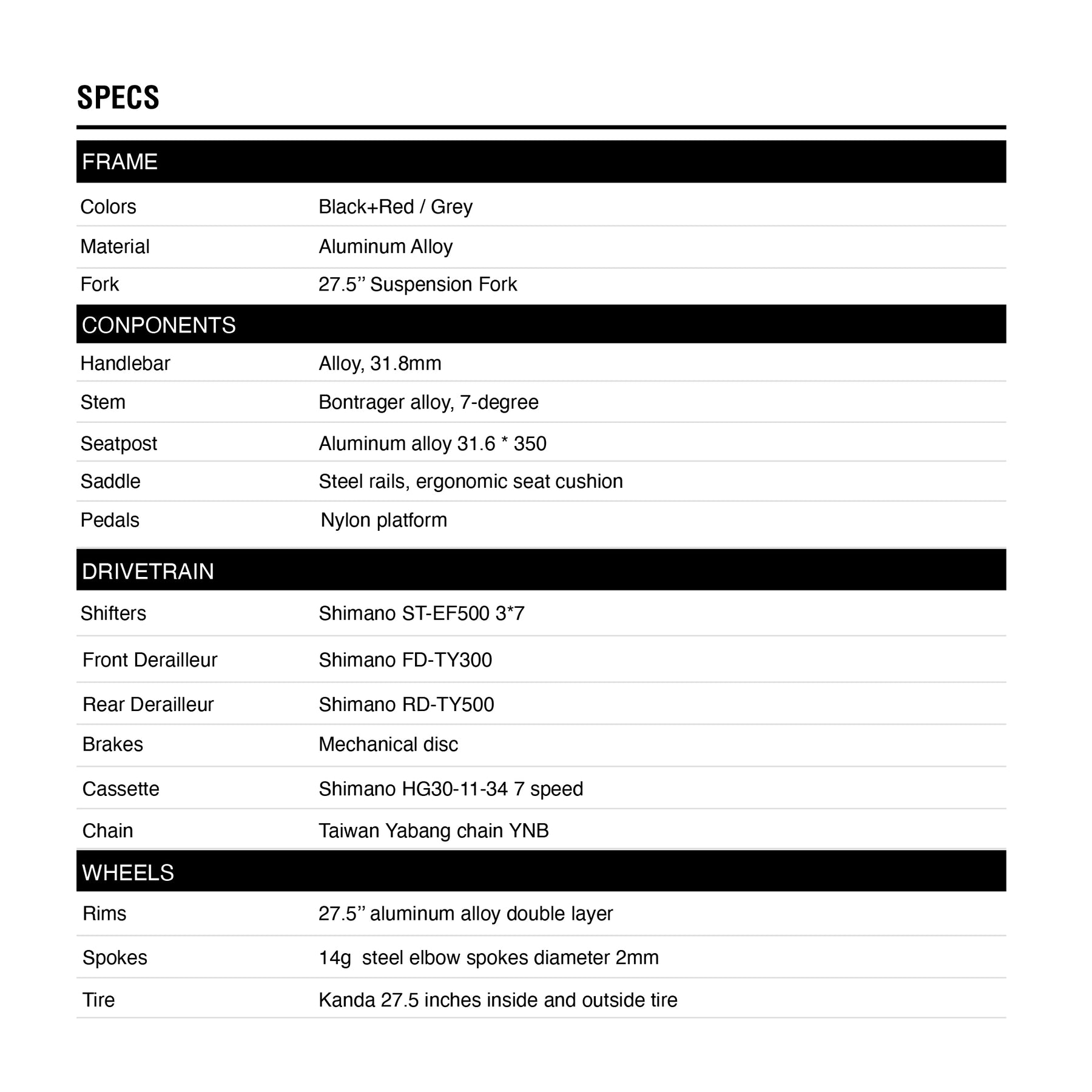 - 21-speed (3x7) trigger shifter with Shimano rear derailleur