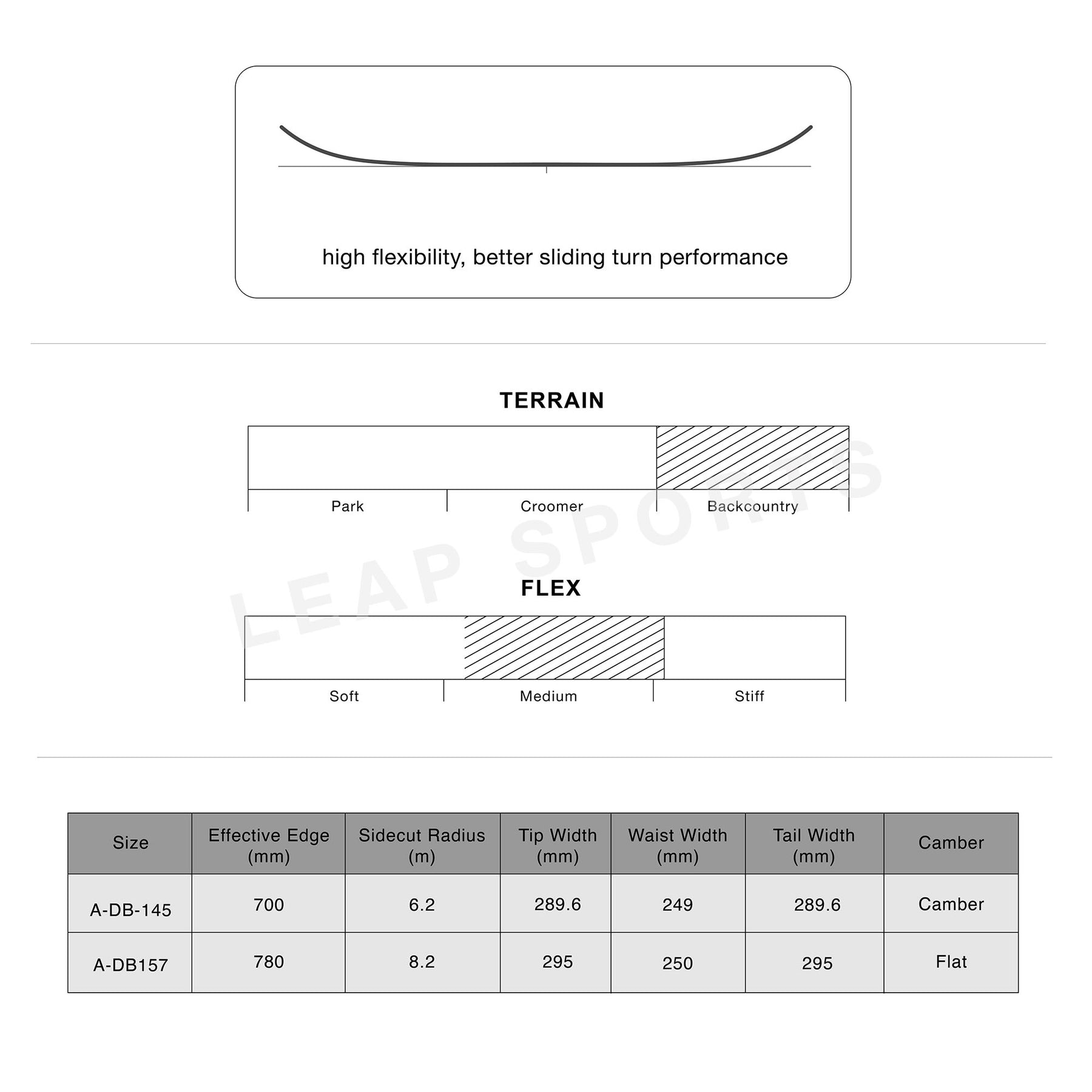 - Widened board can slide smoothly on different slopes and snow qualities.