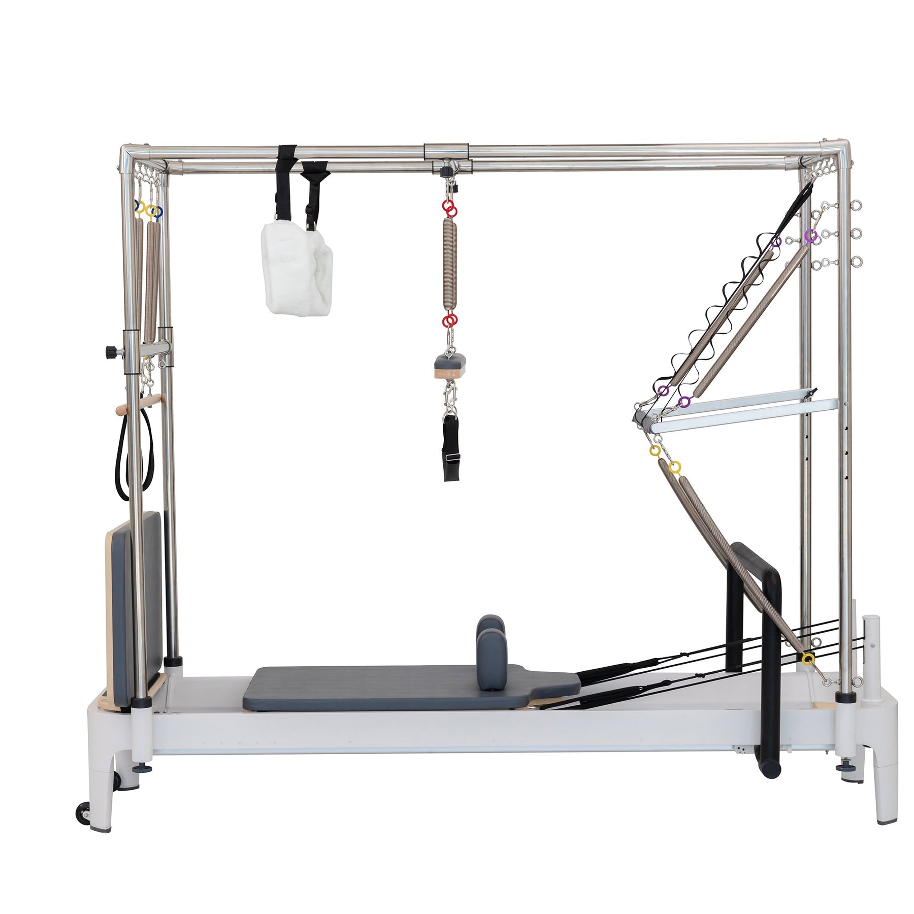 Unlike a standard reformer with tower, the Full-Track Cadillac Reformer Infinite features a full Cadillac frame, dramatically expanding exercise possibilities. Suspension work, spinal decompression, assisted mobility, standing training, and advanced acrobatic-style movements can all be performed safely on a single machine.